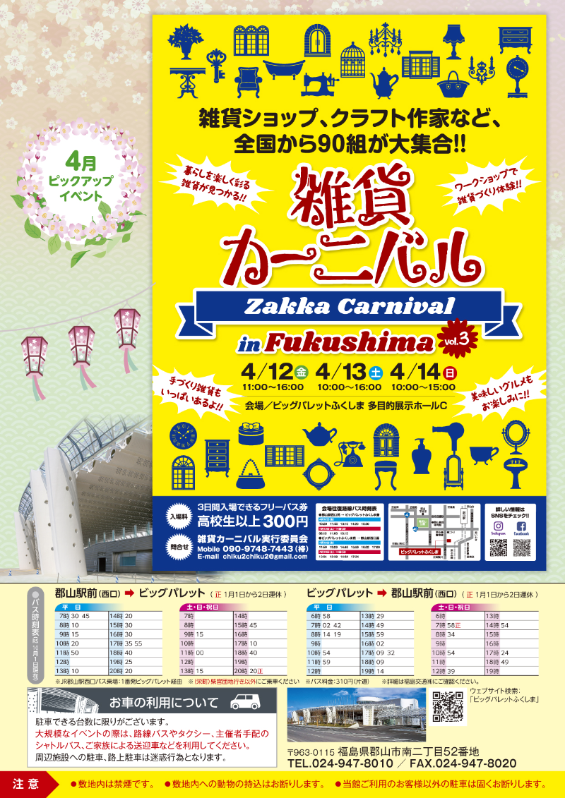 2024年3月25日(月) 令和6年4月号イベントカレンダー発行のお知らせ 4月号イベントカレンダーチラシとポスターを発行しました。ホームページのイベントカレンダーは随時更新しています。 添付データ 令和6年4月号イベントカレンダー.pdf(3721.1KB) ビッグパレットからのお知らせ 2026年3月3日(火) 施設空き状況のお知らせ 2026年2月25日(水) 令和8年3月号イベントカレンダー発行のお知らせ 2026年1月25日(日) 令和8年2月号イベントカレンダー発行のお知らせ View AllTOP