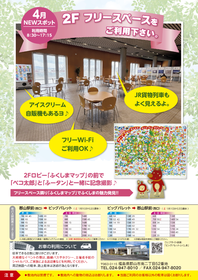 2024年4月25日(木) 令和6年5月号イベントカレンダー発行のお知らせ 5月号イベントカレンダーチラシとポスターを発行しました。ホームページのイベントカレンダーは随時更新しています。 添付データ 令和6年5月号イベントカレンダー(表面)(1455.9KB) 令和6年5月号イベントカレンダー(裏面)(3951.7KB) ビッグパレットからのお知らせ 2025年12月4日(木) 職員募集(展示場等担当専門員)のお知らせ 2025年12月2日(火) 施設空き状況のお知らせ 2025年11月25日(火) 令和7年12月号イベントカレンダー発行のお知らせ View AllTOP