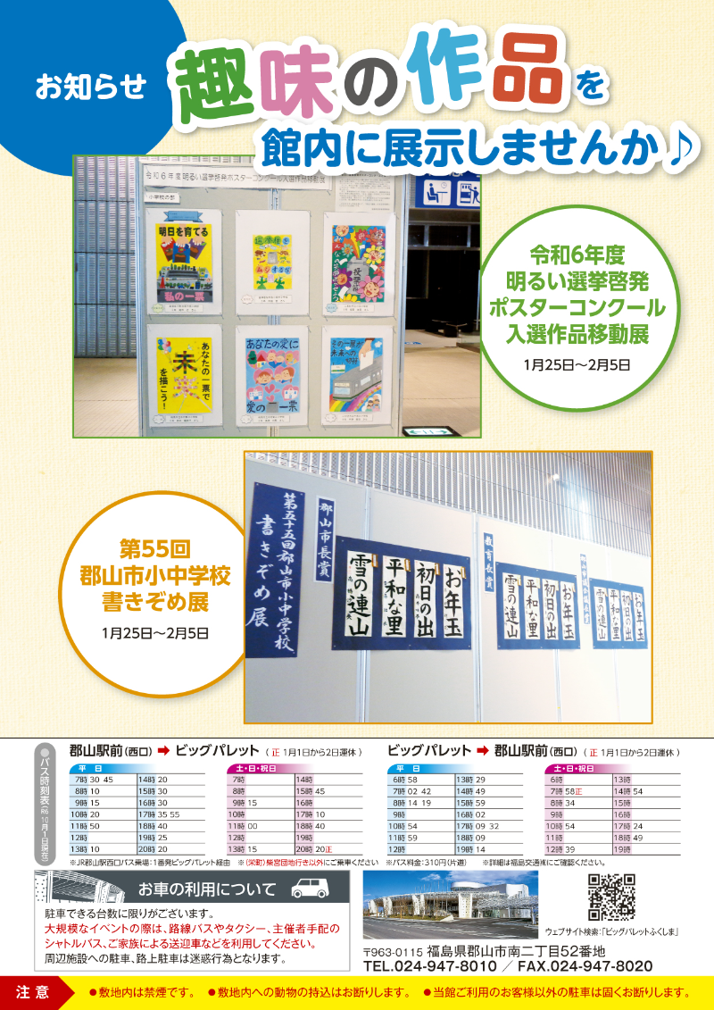 2025年3月25日(火) 令和7年4月号イベントカレンダー発行のお知らせ 4月号イベントカレンダーチラシとポスターを発行しました。ホームページのイベントカレンダーは随時更新しています。 添付データ イベカレ4月PDF(3787.4KB) ビッグパレットからのお知らせ 2025年12月4日(木) 職員募集(展示場等担当専門員)のお知らせ 2025年12月2日(火) 施設空き状況のお知らせ 2025年11月25日(火) 令和7年12月号イベントカレンダー発行のお知らせ View AllTOP