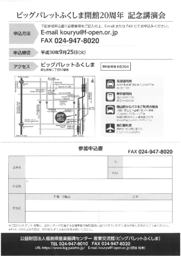 「ビッグパレットふくしま開館20周年 記念講演会」開催のお知らせ