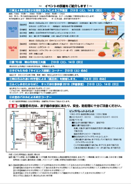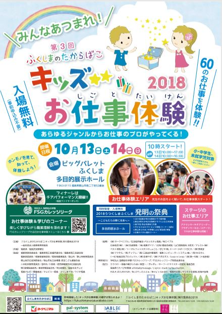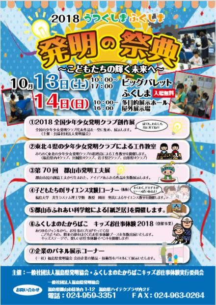2018全国少年少女発明クラブ創作展、ふくしまのたからばこ キッズお仕事体験2018