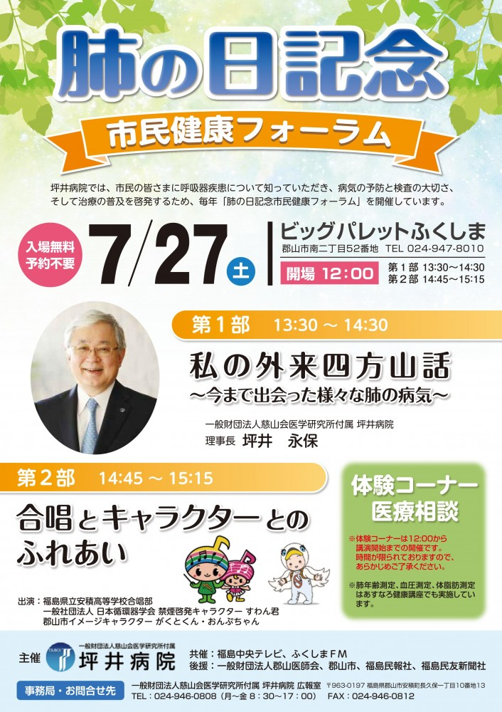 講演内容:「肺」の健康について坪井病院理事長 坪井永保が講演致します。