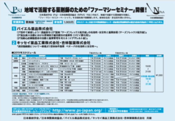 キッセイ薬品工業㈱・杏林製薬㈱ 薬剤師のためのセミナー
