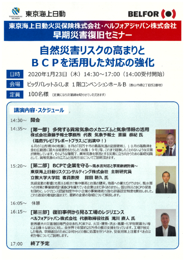 自然災害で被災した企業の早期復旧対策などを学ぶセミナー