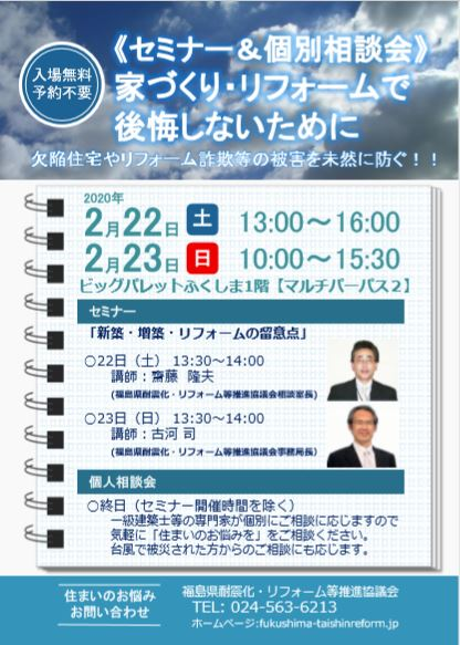 欠陥住宅やリフォーム詐欺等の被害を未然に防ぐためのセミナーと相談会