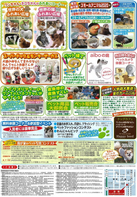 世界のペットを一堂に集め、ふれあいコーナー、お笑い芸人のショー、ペット用品の販売などは開催中止となりました。