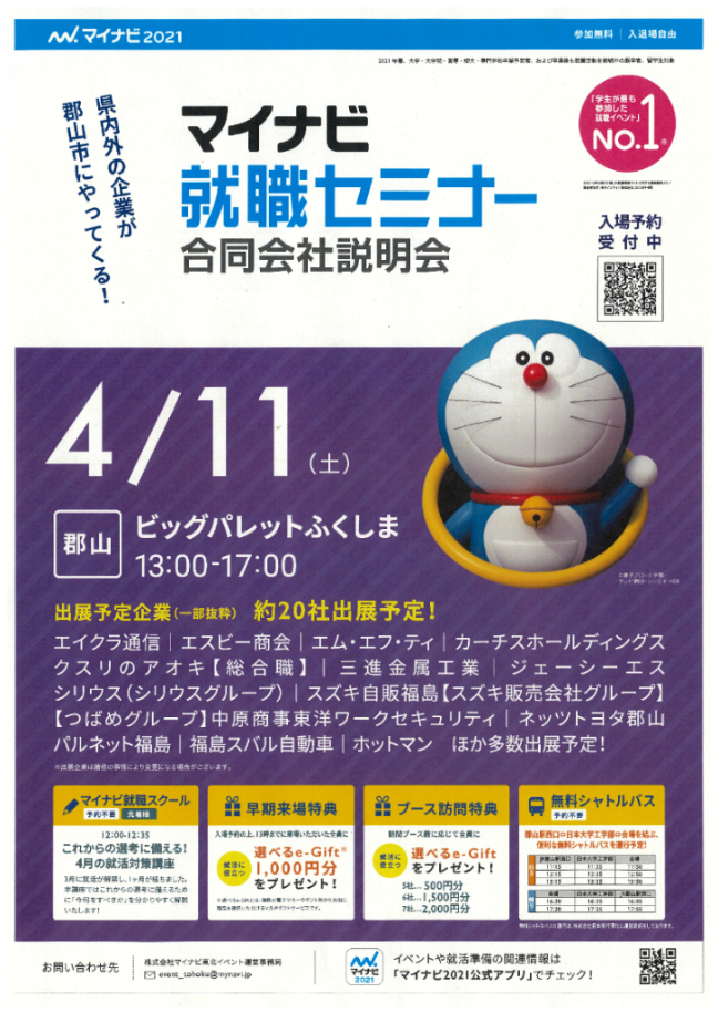 対象者:2021年春、大学・大学院・高専・短大・専門学校卒業予定者、卒業後も就職活動を継続中の既卒者、外国人留学生