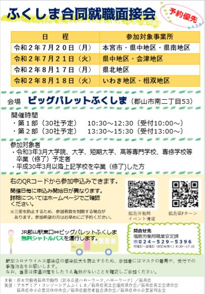 - 厚生労働省福島労働局(新卒応援ハローワーク、ハローワーク)、福島県
