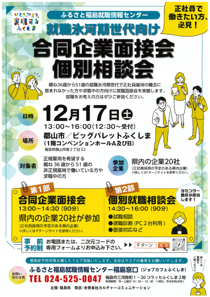 就職氷河期世代向け 合同企業面接会・個別相談会
