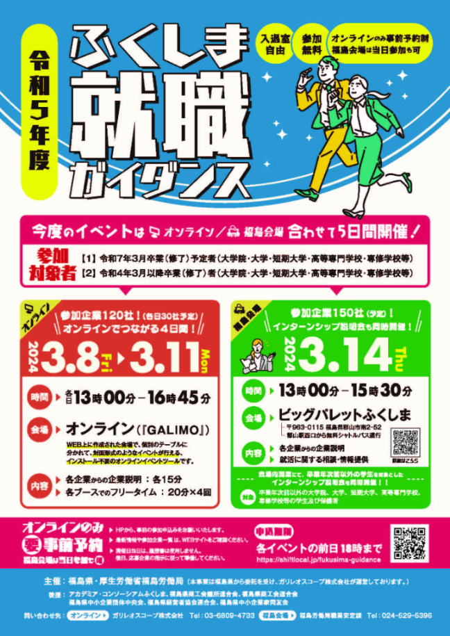 対象者:令和7年3月大学院・大学・短期大学・高等専門学校・専修学校等を卒業(修了)予定の方。令和4年3月以降に同校等を卒業(修了)した方。