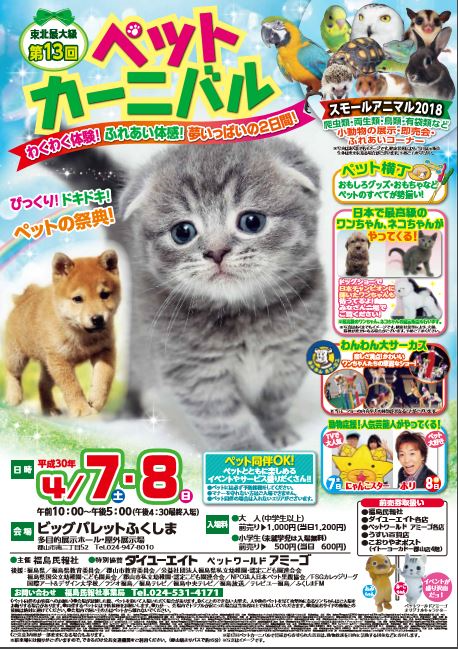 世界のペットを一堂に集め、ふれあいコーナー、お笑い芸人のショー、ペット用品の販売など多彩な内容