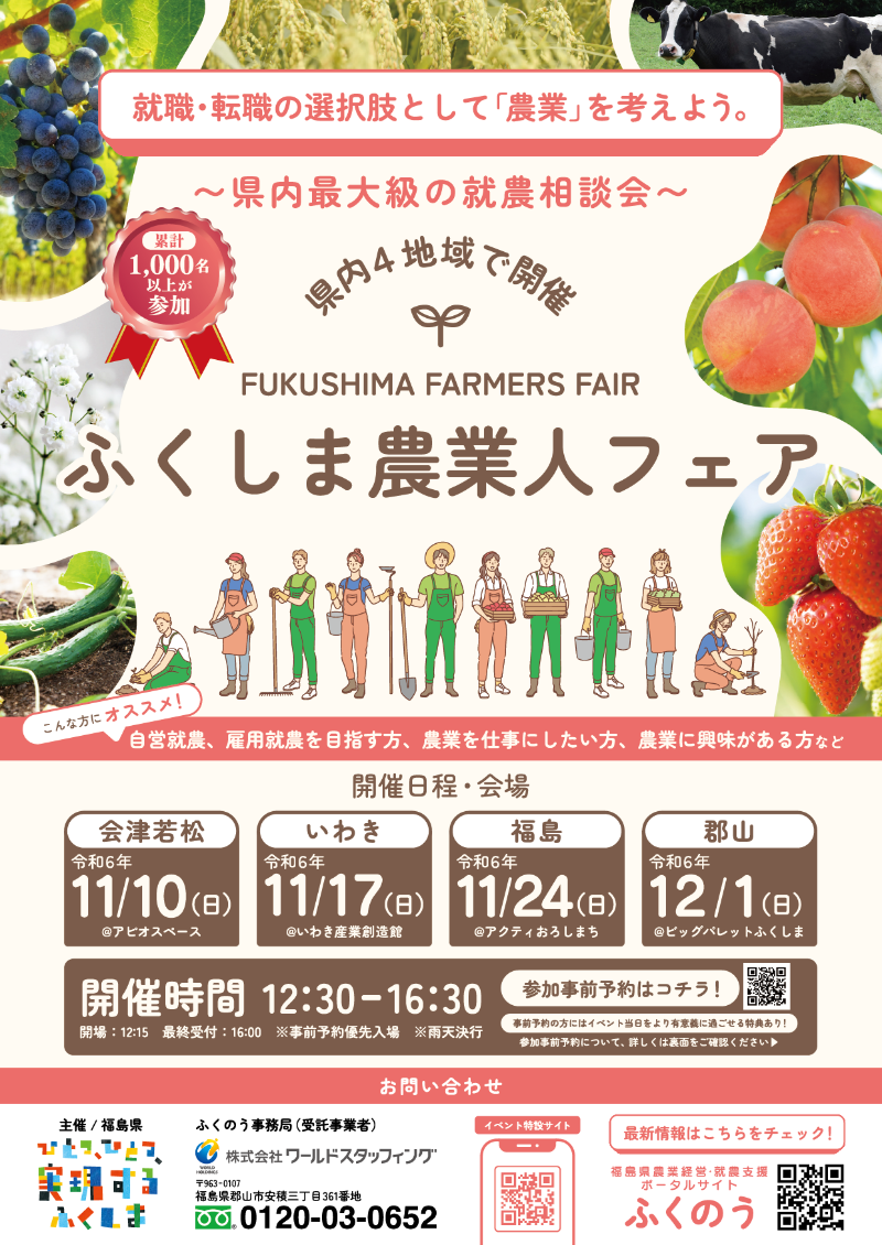 農業に関する多くの「知りたい」情報を得られる福島県内最大級の就農相談会