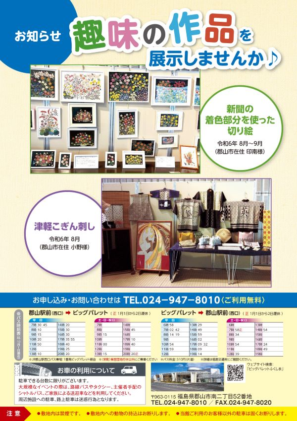 2024年12月24日(火) 令和7年1月号イベントカレンダー発行のお知らせ 1月号イベントカレンダーチラシとポスターを発行しました。ホームページのイベントカレンダーは随時更新しています。 添付データ ビッグパレットイベントカレンダー1月(3273KB) ビッグパレットからのお知らせ 2026年2月25日(水) 令和8年3月号イベントカレンダー発行のお知らせ 2026年2月18日(水) 施設空き状況のお知らせ 2026年1月25日(日) 令和8年2月号イベントカレンダー発行のお知らせ View AllTOP