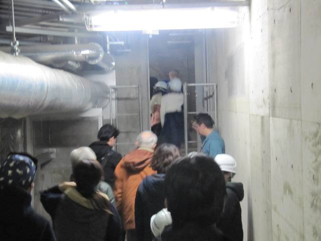参加された皆さまには約1時間40分かけ、地下から4階まで、間仕切り収納庫の中や、地下ピットの中、梯子階段で立ち入る区域までご案内させていただきました。外の非常階段など、怖くはなかったでしょうか。
